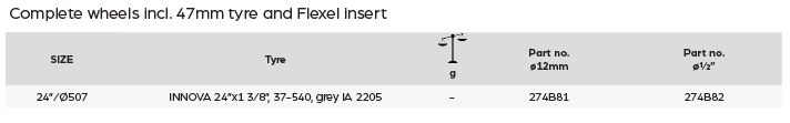 - Max load: 140 kg per wheel