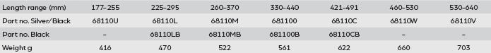• Options of lenght range: 177-255 cm, 225-295 cm, 260-370 cm, 330-440 cm, 421-491 cm, 460-530 cm, 530-640 cm